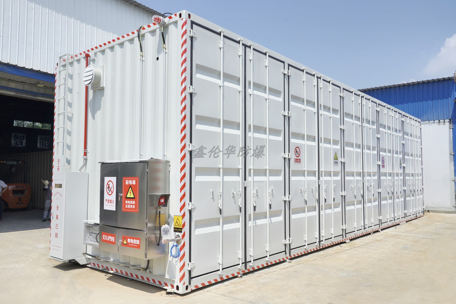 新能源車廠使用防爆集裝箱,主要是出于對(duì)鋰電池等易燃易爆物品在儲(chǔ)存、運(yùn)輸及測(cè)試環(huán)節(jié)中安全風(fēng)險(xiǎn)的防控需求,其核心價(jià)值體現(xiàn)在安全防護(hù)、合規(guī)保障、效率提升三大層面,具體分析如下: